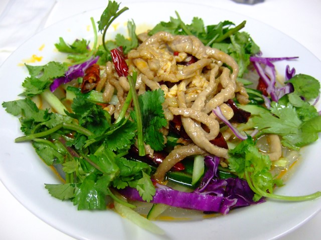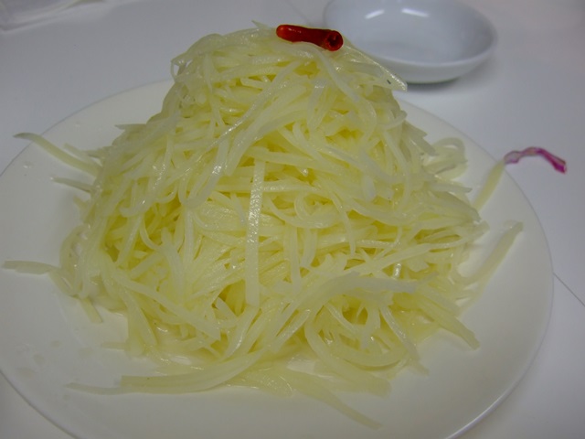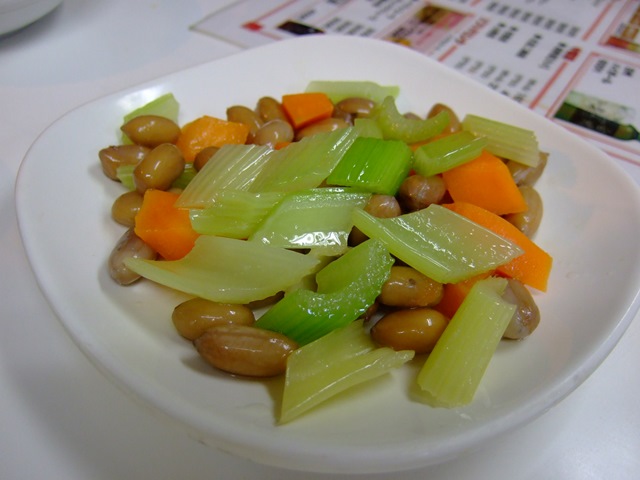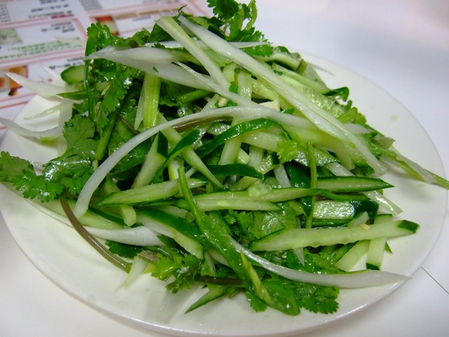 まずは冷菜から。食欲全開!!!老虎菜、拉皮、芹菜花生米、土豆絲、など下酒菜を!老虎菜は香菜てんこもりで、おまけに辣椒が辛い!!拉皮は肝心の拉皮が少なくてほんっと残念!もっとたっぷり入れてくれ~~!