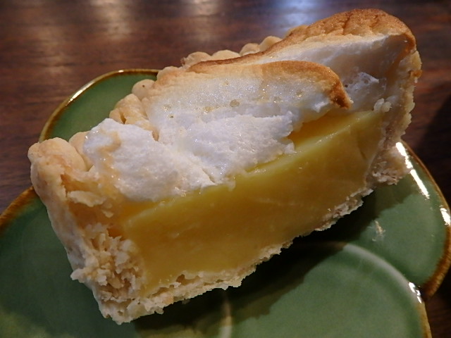 そして奥にある丸いのがレモンパイ。正直最初は、”ついでに買っとくか”くらいの気持ちだったのですが(失礼)、食べてみてびっくり!!!今回一番の大ヒットがこのレモンパイでした。上のメレンゲのふわっふわ感もいいのですが、なにしろレモンクリームの酸味と甘みが絶妙!これ、まじ美味しいです!!