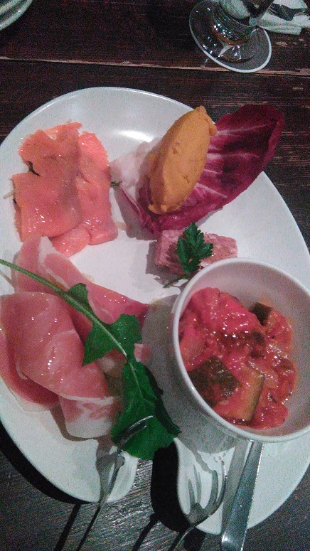 チーズの盛り合わせにモッツァレラ&トマト、エスカルゴ、それとマッシュルームのゴルゴンゾーラを!マッシュルームはこれがアツアツでチーズとメッチャ合う!中のクルミがまたいいアクセント。これ、自分でも作ってみたい!すごく美味しい♪