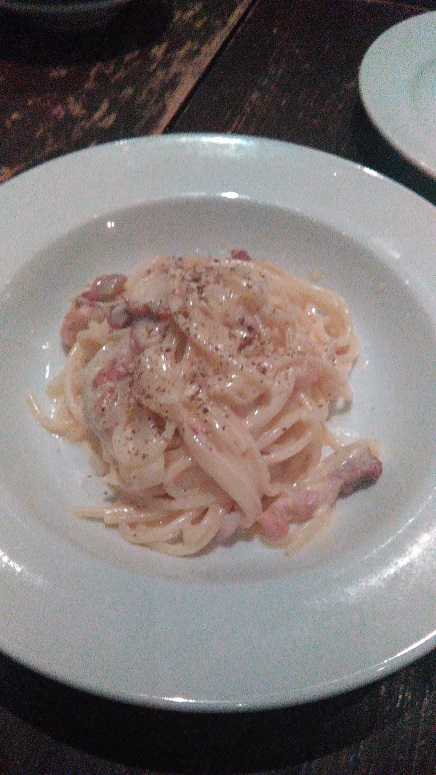 カルボナーラのパスタも美味しかった!でも量が少ないわ~。びっくりするくらい少量でした。笑