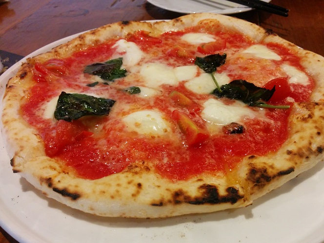 マルゲリータは焼き立て!自家製ソーセージとスモークチーズ。このチーズが絶品♪マルゲリータも焼き立てとあってアツアツとろとろで美味!
